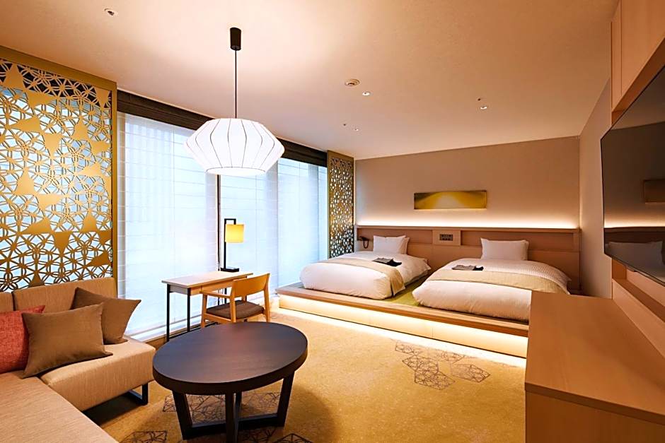 The air-conditioned suite has 1 bedroom and 1 bathroom with a walk-in shower and a bath. The suite offers tatami, a safe deposit box, an electric kettle, pajamas and a flat-screen TV. The unit has 2 beds.